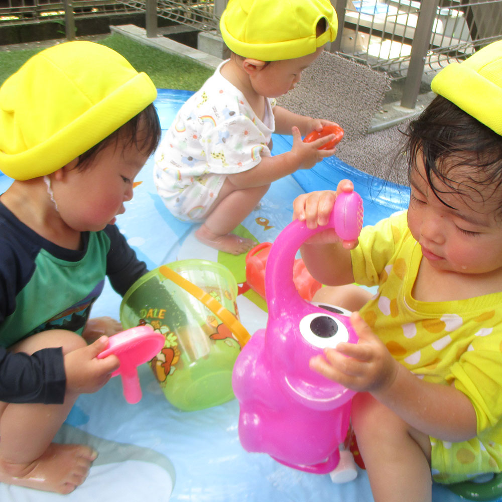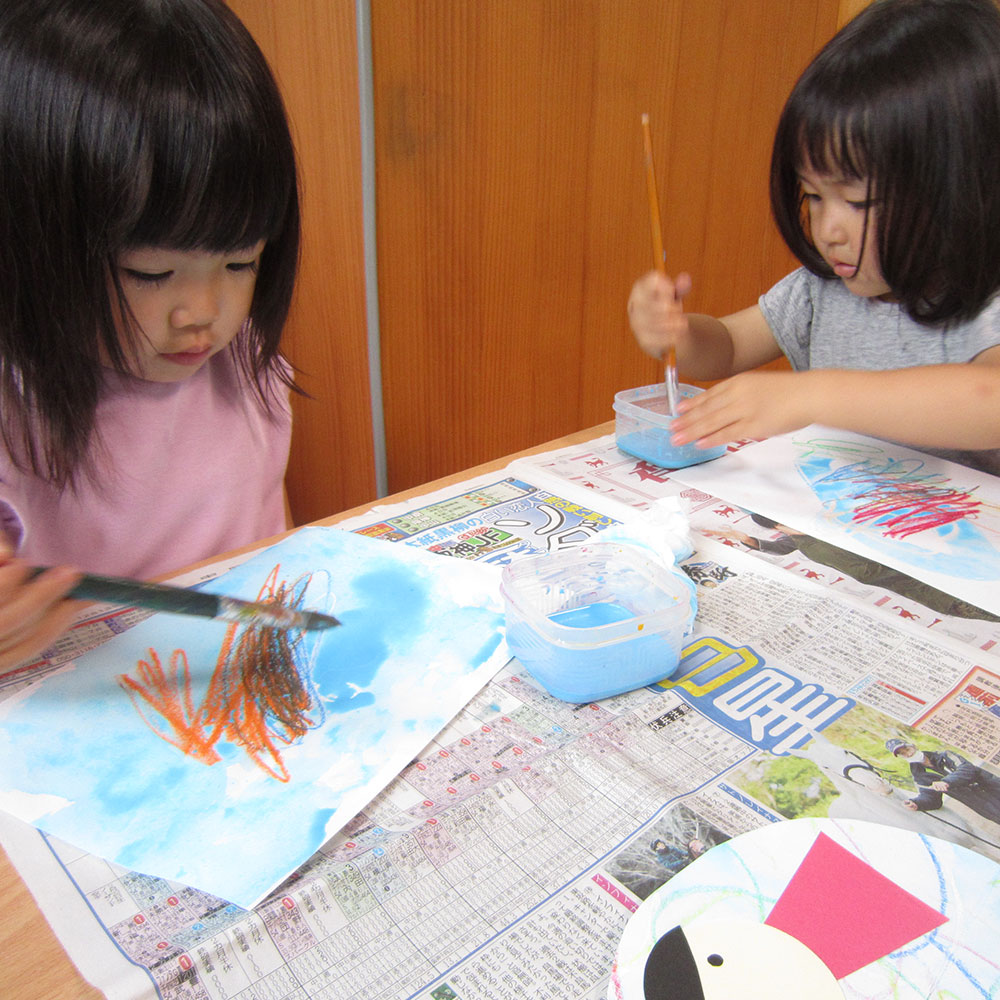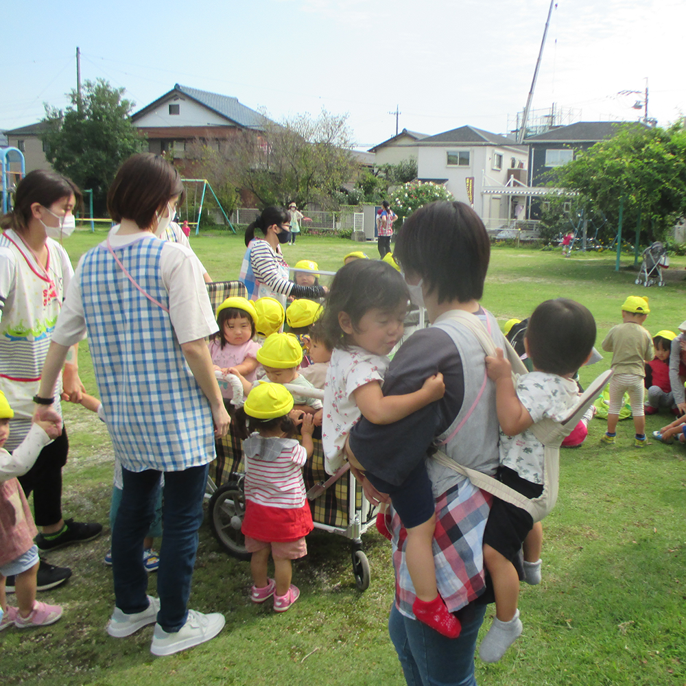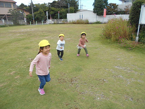 天気が良い日は、散歩に出かけたり、広場や公園で元気いっぱい遊びます。雨の日は製作をしたり、ボールテントや新聞遊びなど、お部屋で楽しく過ごします。