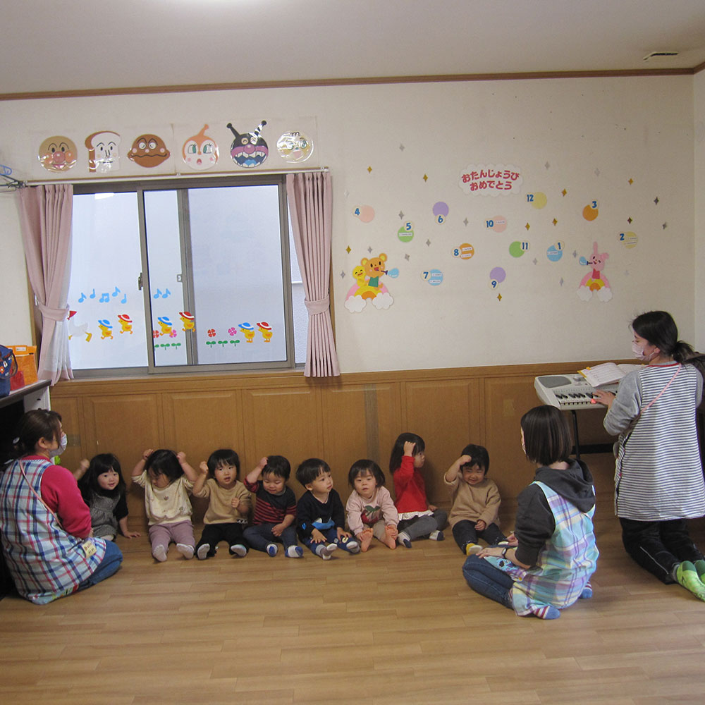 絵本の読み聞かせや手遊びをしたり・季節のお歌を歌います。お迎えが来るまでお友だちや保育士と一緒に好きな遊びを楽しみます。