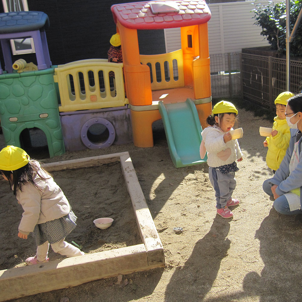 園舎内に砂場や遊具が充実した園庭が2つあり、年齢に合わせて子どもたちが安全に遊べる環境があります。